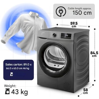 Сушилня за дрехи Bosch WQH245B4BY, 9 кг, Smart Dry, Термопомпа, Вътрешно осветление, Клас A+++