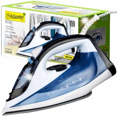 Парна ютия Maestro MR-300C, 1600W, керамика, бял със синьо, 26x14x11cm