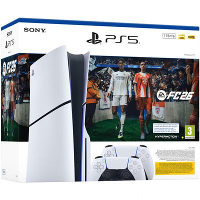 Конзола PlayStation 5, 1TB SSD, Допълнителен контролер, Игра EA Sports FC 26, бял, 3.0 кг