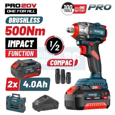 Акумулаторен ударен гайковерт BORMANN Pro BBP5422X44CA , 20 V, 500 Nm, 2 x 4 Ah