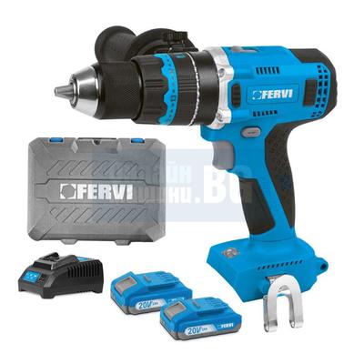 Акумулаторен ударен винтоверт Fervi FB20ID3AB-22B, 20 V, 2х2 Ah, 75 Nm, с батерии, зарядно и куфар