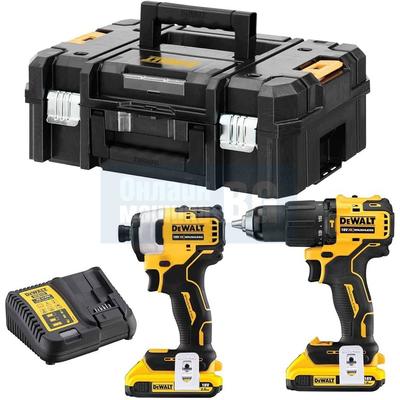 Комплект акумулаторни инструменти DeWALT DCK2062D2T, 18 V, 2 Ah, с 2 батерии, зарядно и куфар