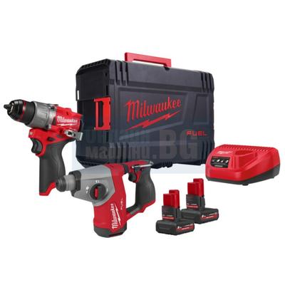 Комплект акумулаторни машини Milwaukee M12FPP2BG2-502X, 12 V, 5 Ah, с батерии, зарядно и куфар