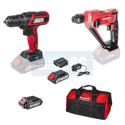 Комплект акумулаторни машини Raider RDP-BXS9, R20, 20 V, 2х2 Ah, с батерии, зарядно и чанта
