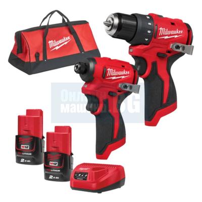 Акумулаторен ударен винтоверт Milwaukee M12FID2-202X, 12 V, 170 Nm, ¼″, с батерии, зарядно и куфар