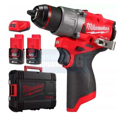 Акумулаторен винтоверт Milwaukee M12FDD2-202X, 12 V, 45 Nm, 2 Ah, с батерии, зарядно и куфар