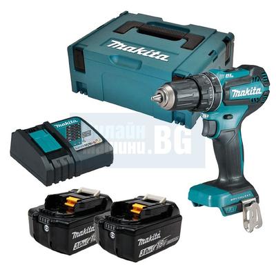 Акумулаторен ударен винтоверт Makita DHP485RFJ, 18 V, 3.0 Ah, 50 Nm, с 2 батерии, зарядно и куфар