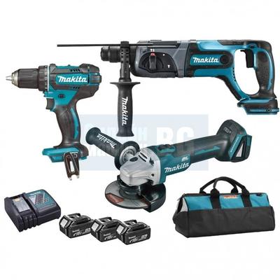 Kомплект aкумулаторни машини Makita DLX3078TX1, LXT, 18 V, 5 Ah, с 3 батерии, зарядно и сак