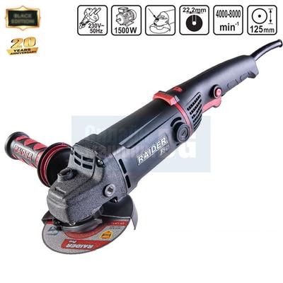 Ъглошлайф с регулиране на оборотите Raider RDP-AG64 Black Edition, 1500 W, 125 мм