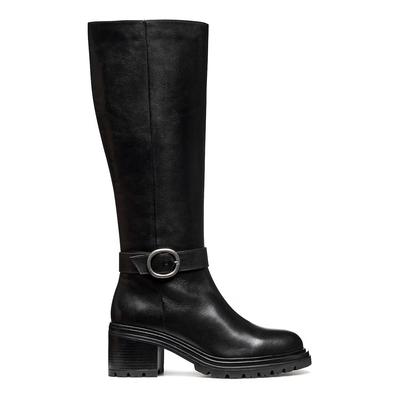 Кожени ботуши до коляното с каишка с тока, Черен Geox
