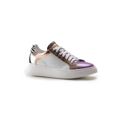 Кожени спортни обувки с дизайн с цветен блок, Бял/Розово златисто/Лавандула Anna Morellini