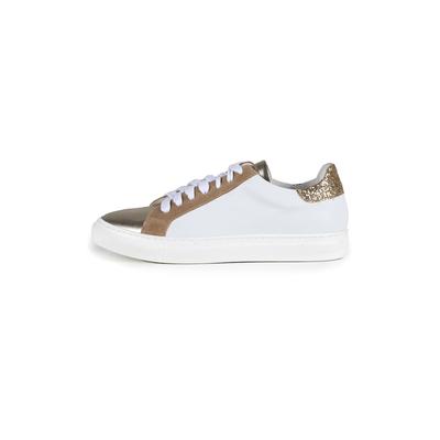 Кожени спортни обувки с метализирани детайли, Златист/Мръснобял/Камел Anna Morellini
