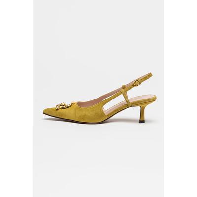 Велурени обувки с отворена пета и котешки ток, Маслинено зелено COCCINELLE