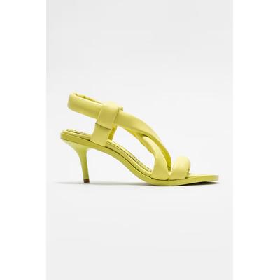 Кожени сандали с ток и отворена пета, Лайм зелено ELLE