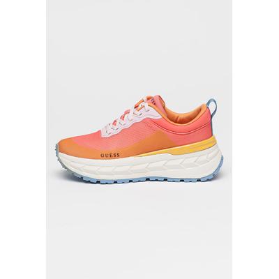 Скосени текстилни маратонки с лого, Жълт/Бледооранжев/Розово GUESS