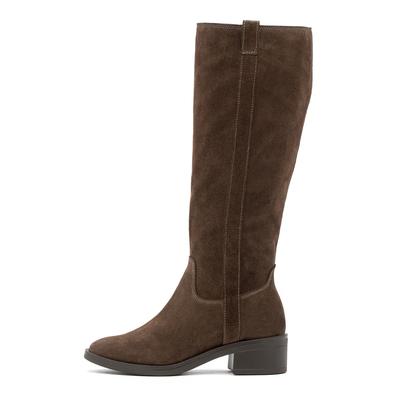 Велурени високи ботуши Bianka с масивен ток, Тъмнокафяв RYŁKO