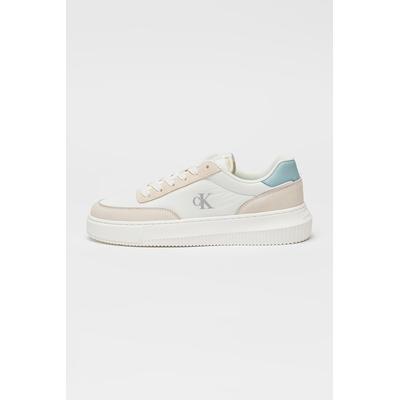 Скосени спортни обувки с кожа, Бял/Светлосин/Светло бежово CALVIN KLEIN JEANS