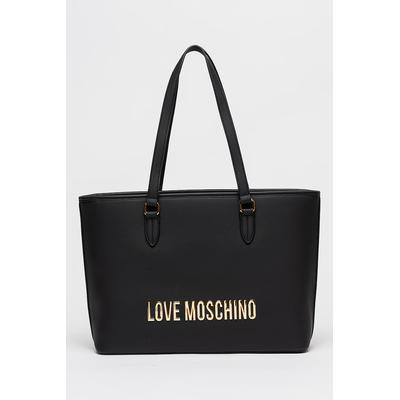 Чанта Tote от еко кожа с метално лого, Черен Love Moschino
