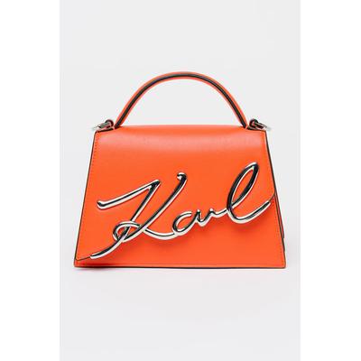 Кожена чанта през рамо Signature, Корал Karl Lagerfeld