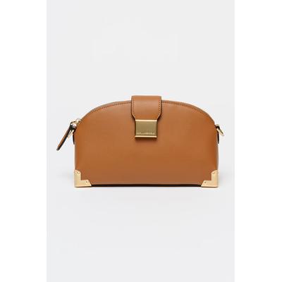 Велурена чанта за рамо с отделяща се каишка за китката, Тъмнокафяв/Коняк кафяв Potamy