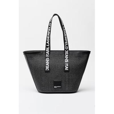 Шопинг чанта Box от рафия с лого, Черен KARL LAGERFELD JEANS