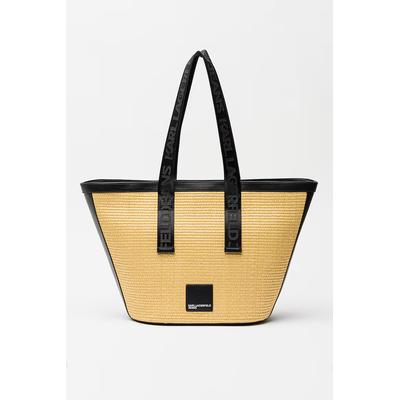 Шопинг чанта Box от рафия с лого, Черен/Бежов KARL LAGERFELD JEANS