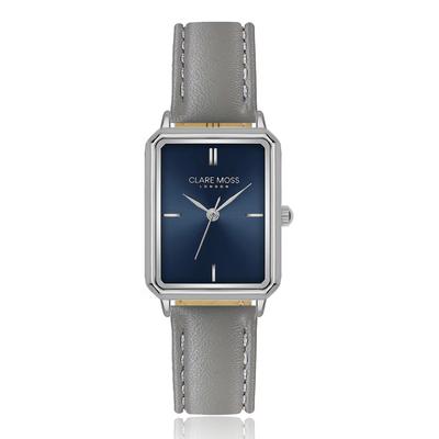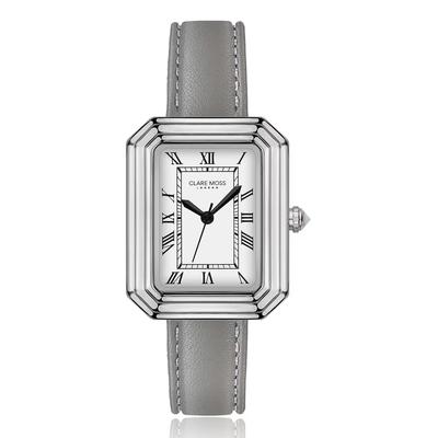 Правоъгълен часовник с кожена каишка, Сив Clare Moss