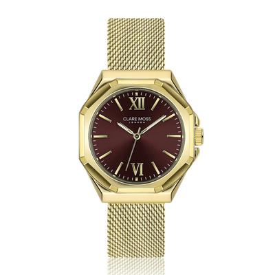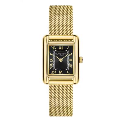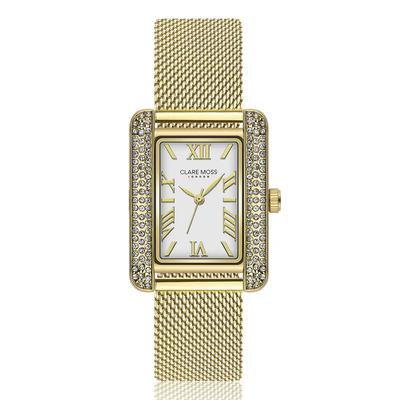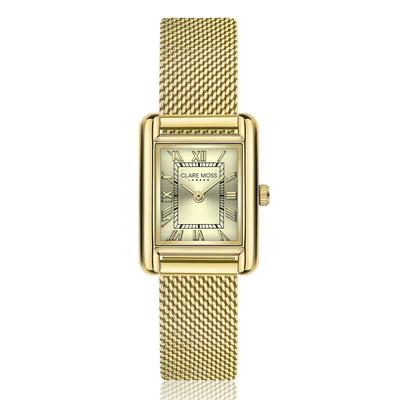Правоъгълен часовник C&M с мрежеста верижка, Златист Clare Moss