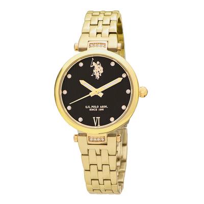Квадратен часовник с кожена каишка, Златист/Морскозелен U.S. Polo Assn.