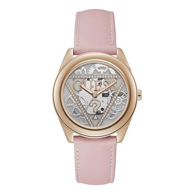 Кварцов часовник с кожена каишка и кристали, Rose Gold/Розово-оранжев GUESS