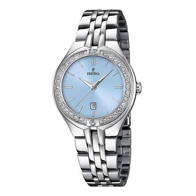 Кварцов часовник с кристали, Сребрист/Пастелносин Festina