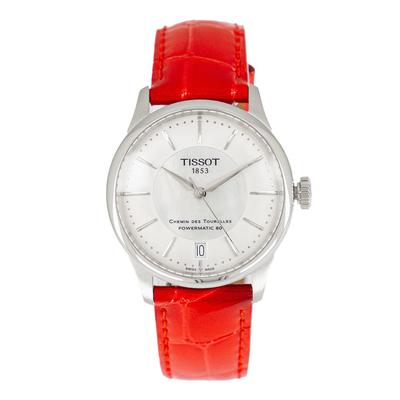 Автоматичен часовник с кожена каишка с шагрен, Бледочервен Tissot