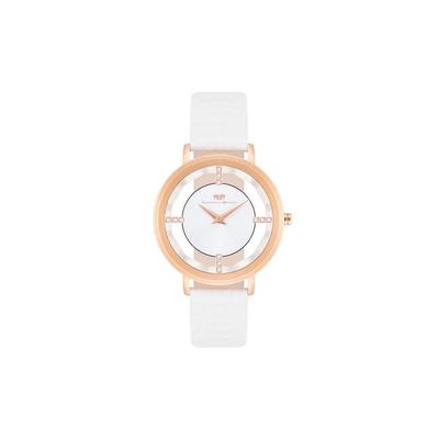 Дамски часовник 36 мм, бяла каишка от екологична кожа, водоустойчивост 5 ATM Escape