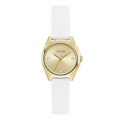 Часовник от неръждаема стомана със силиконова каишка, Златист/Бял GUESS