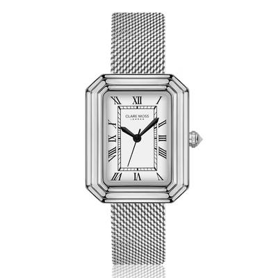 Правоъгълен часовник Graceful с мрежеста верижка, Сребрист Clare Moss