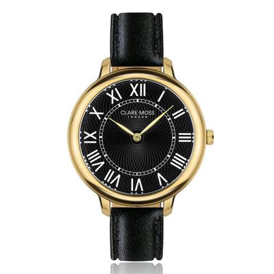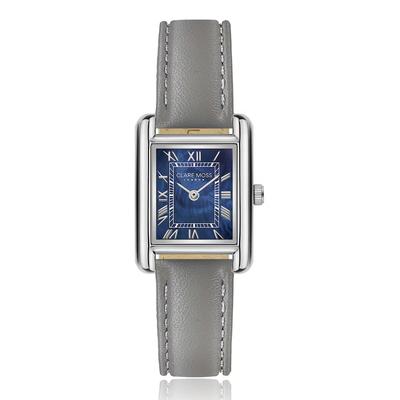 Правоъгълен часовник с две стрелки и кожена каишка, Сив Clare Moss