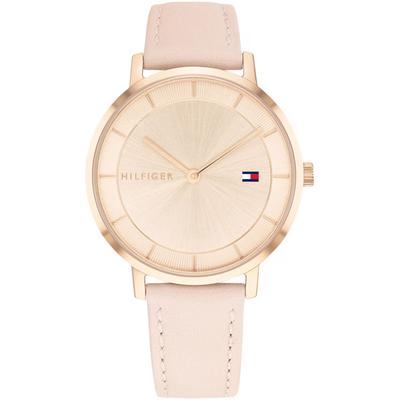 Дамски часовник кварц, розова кожена каишка, корпус от розово злато, 3 ATM Tommy Hilfiger
