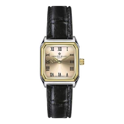 Квадратен часовник с кожена каишка, Сребрист/Черен Philipp Blanc
