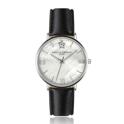 Часовник Maris от неръждаема стомана с кожена каишка, Черен Amelia Parker
