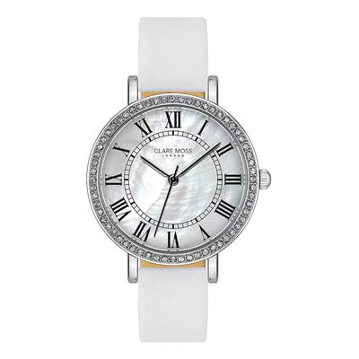 Часовник Symphony с кожена каишка, Сребрист/Бял Clare Moss