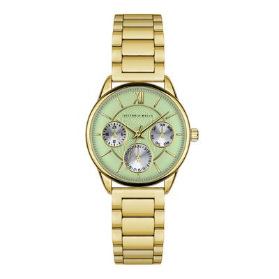 Часовник от неръждаема стомана с верижка, Златист/Светлозелен Victoria Walls