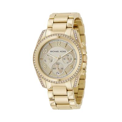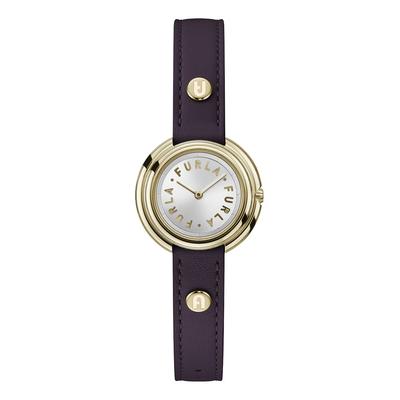 Мултифункционален часовник от неръждаема стомана с кожена каишка, Златист/Тъмнокафяв Furla