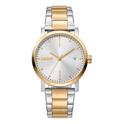 Кварцов часовник с лого на циферблата, Сребърен/Златист DKNY