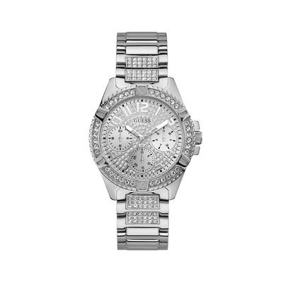 Кварцов часовник с кожена каишка и кристали, Златист/Черен GUESS
