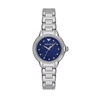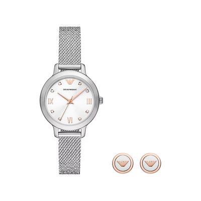 Кварцов часовник и един чифт обеци, Сребрист Emporio Armani