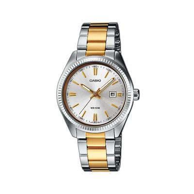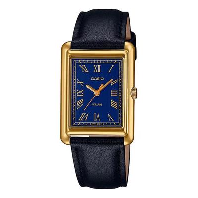 Часовник от неръждаема стомана с кожена каишка, Златист/Черен Casio
