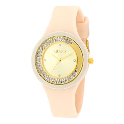 Часовник със силиконова каишка и кристали, кремав Liu Jo