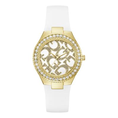 Овален часовник със силиконова каишка, Златист/Бял GUESS