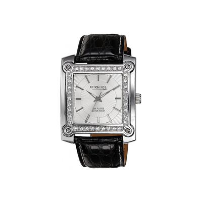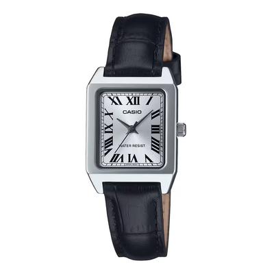 Часовник от неръждаема стомана с кожена каишка, Сребрист/Черен Casio
