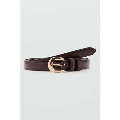 Тънък кожен колан Tina с метална тока, Тъмнокафяв HUGO